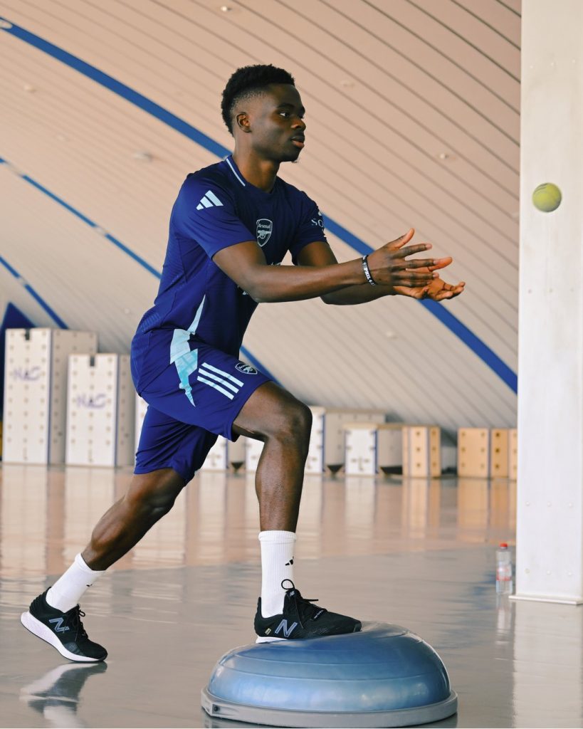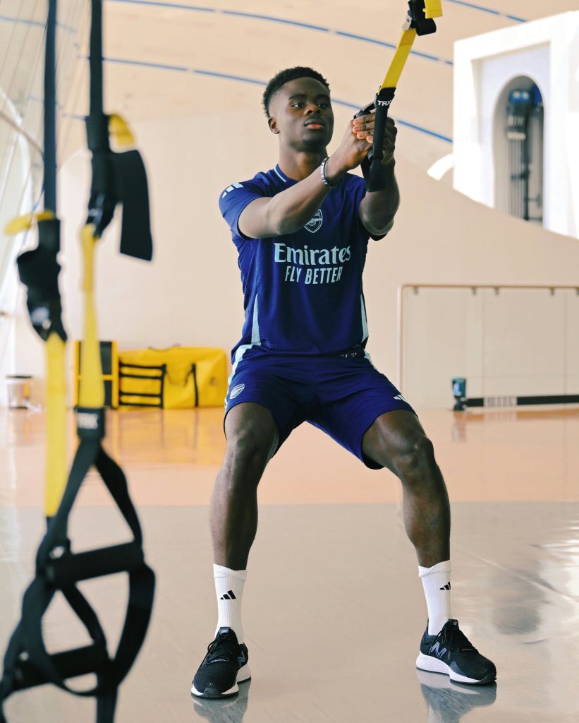 After being spotted using crutches at the Emirates Stadium less than a month ago, Saka is now in Dubai with the Arsenal team and is continuing his rehabilitation there. Arsenal shared images of Saka smiling while working out in the gym on Monday, writing, “Stepping up that rehab.”